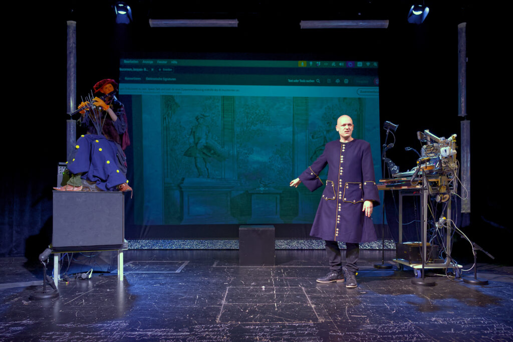 Was passiert nun, wenn man heute versucht, diesen ersten Androiden nachzubauen? Es beginnt eine Forschungsreise in die komplexen Zusammenhänge von Technologie und Arbeit, die Versprechen der „Künstlichen Intelligenz“-Industrie, alte und neue Ausbeutungsmuster bis zu den Grenzen des Machbaren und der Phantasie. Und außerdem entsteht dabei Android (Baujahr 1737).